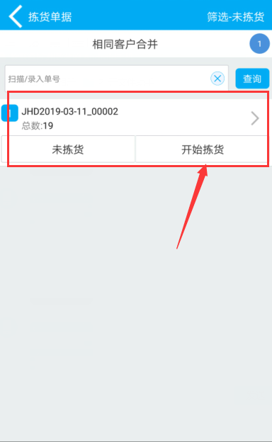 步骤二:app端用对应的拣货人登录到软件后? ,找到【合并拣货】,在联网的状态下,根据具体的拣货规则下,找到具体的单据,即可操作