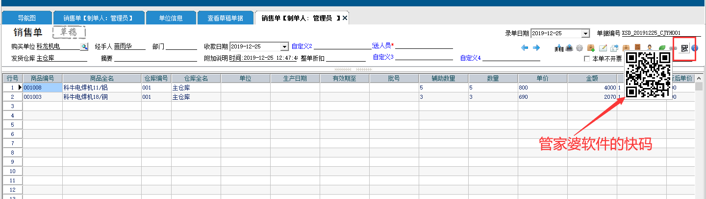 2.2.选择:【草稿】,取的是管家婆软件的销售单草稿