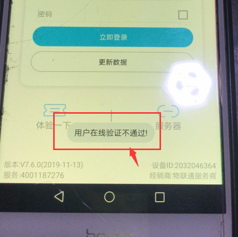 注意:【开启在线验证功能】,手机端必须能正常连接到物联通后台,这个时候程序需要校验后台这个操作员是否存在